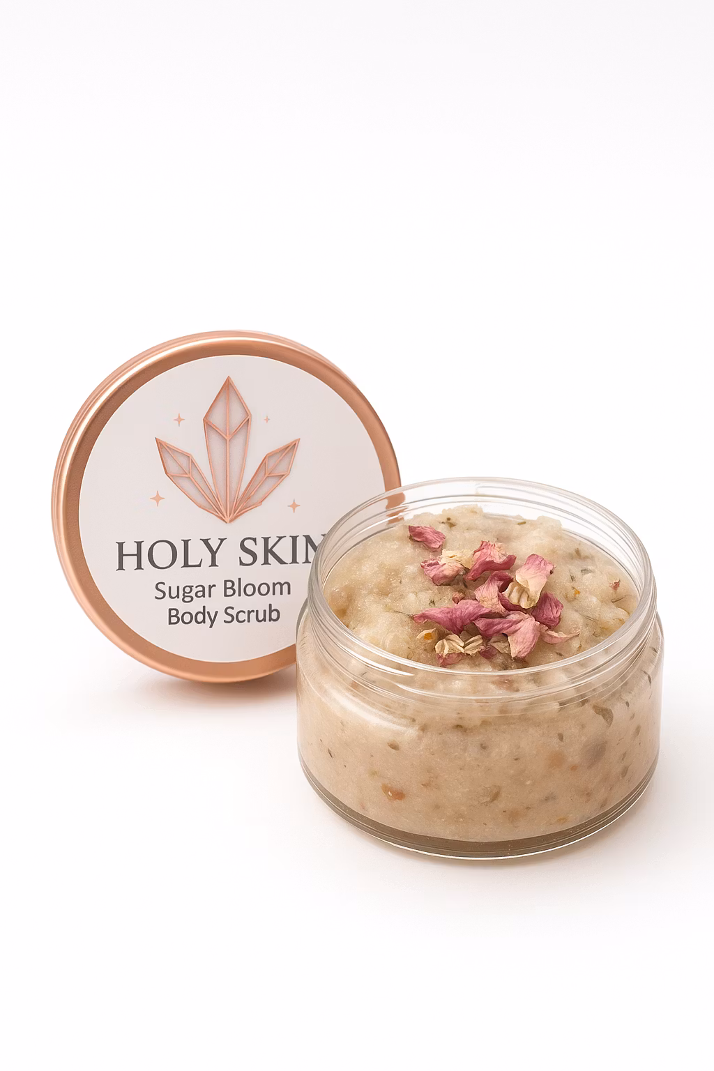 Sugar Bloom är en handgjord kroppsskrubb skapad för att väcka huden till liv med naturens egen magi.